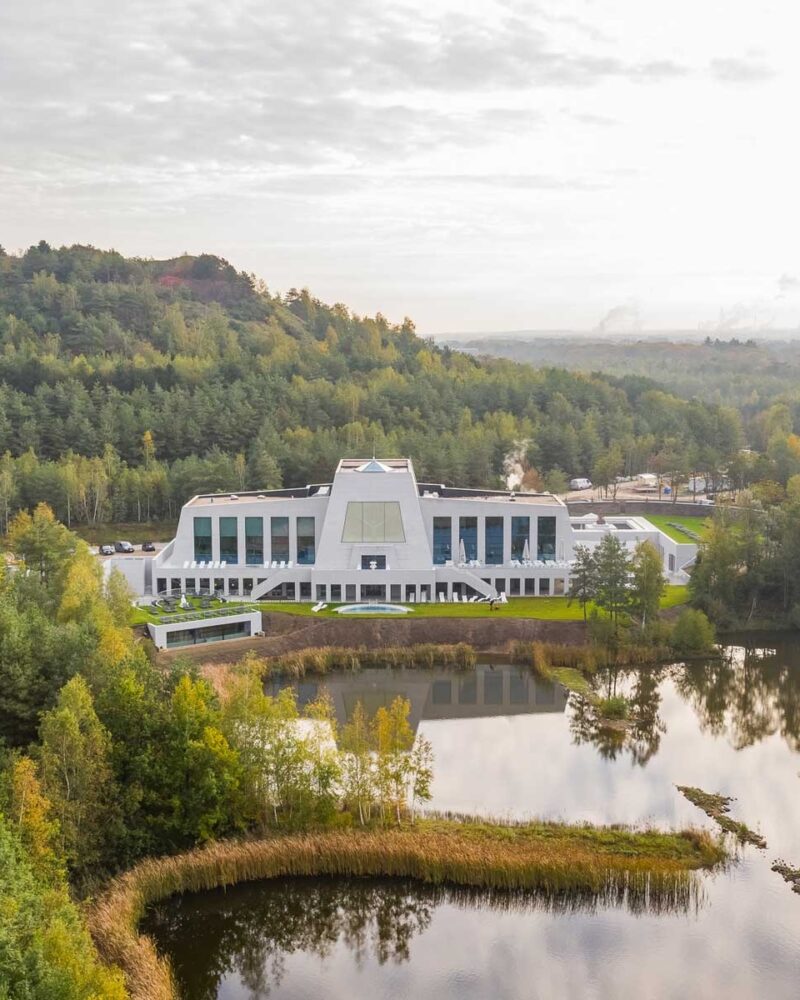 De golvende pontons van de brug brengen je als het ware het water op, waar je in het midden van de plas wordt getrakteerd op een adembenemend uitzicht van 360°. Elke aanpassing in dit landschap is zorgvuldig ontworpen om perfect in harmonie te zijn met de natuurlijke omgeving. De spiraalvorm van de brug zorgt voor een vloeiende, organische integratie, terwijl de transparante balustrade ervoor zorgt dat er geen enkel visueel obstakel is. De brug lijkt zelfs te zweven boven het water!